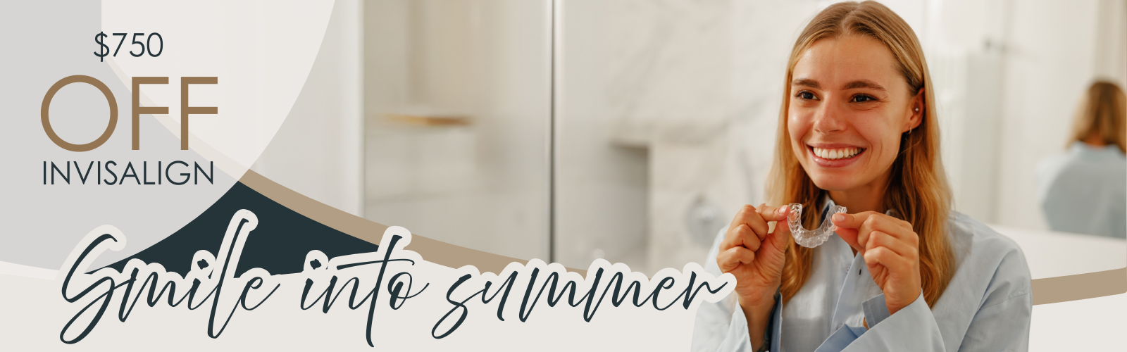 *Must mention this offer to receive discount towards comprehensive Invisalign treatment. May not be combined with any other offer or discount. Valid on comprehensive Invisalign treatment for adults or children. Not valid for previous treatment or treatment already begun. Specialty brackets or retainers may be additional. ADA 8080, 8090. Offer valid for the month of April 2026 only. Terms and conditions may apply.